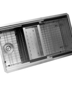 Undermount Single Bowl Kitchen Sink with Walnut Accessories