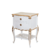 This solid mango wood nightstand is designed for bedside storage in residential bedrooms. It features a carved patchwork design on the drawer front, created through a manual carving process. The structure includes a flat top surface suitable for placing a lamp, clock, or personal items, along with enclosed drawer storage for small essentials.