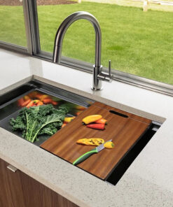 - Optional Accessories Sold Separately, Wood Cutting Board, HDPE Cutting Board and Rinse Tray